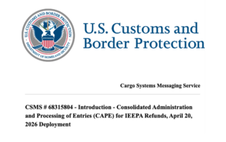 In a Cargo Systems Messaging Service announcement, U.S. Customs and Border Protection (CBP) revealed that it will deploy the first phase of the Consolidated Administration and Processing of Entries (CAPE) tool on April 20, 2026, within the Automated Commercial Environment Secure Data Portal (ACE). This release establishes an electronic process [...]
