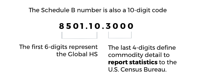 For classification of physical goods exporting out of the United States, we utilize the Schedule B designation. Schedule B is administered by the U.S. Census Bureau and just like the import HTS, the export Schedule B relies on the Global System Harmonized System issued by the WCO for its headings and subheadings. Schedule B numbers are used to report statistics to the Census Bureau, not to assign duty rates like the U.S. HTS.