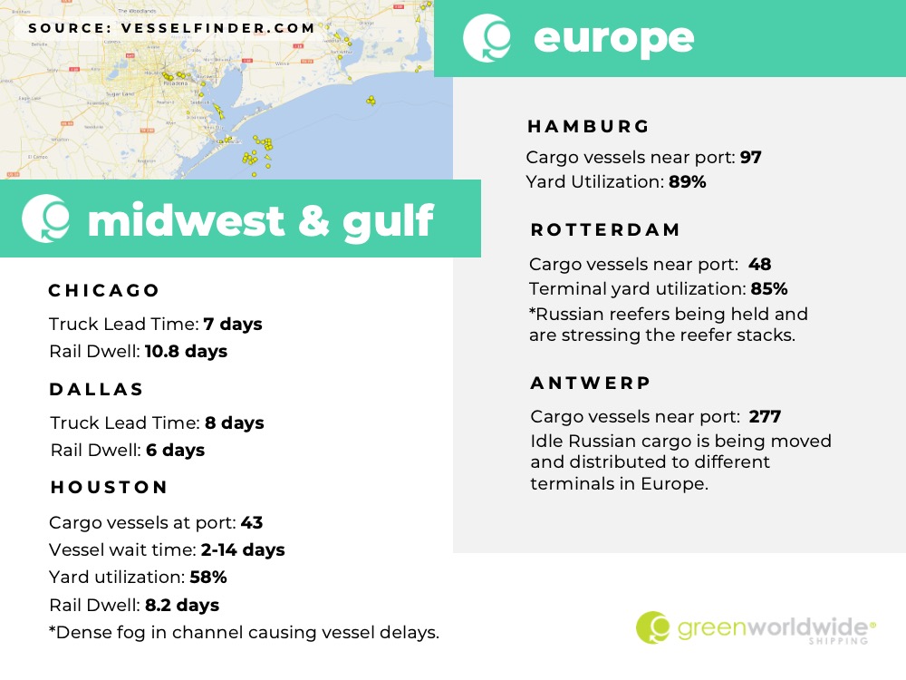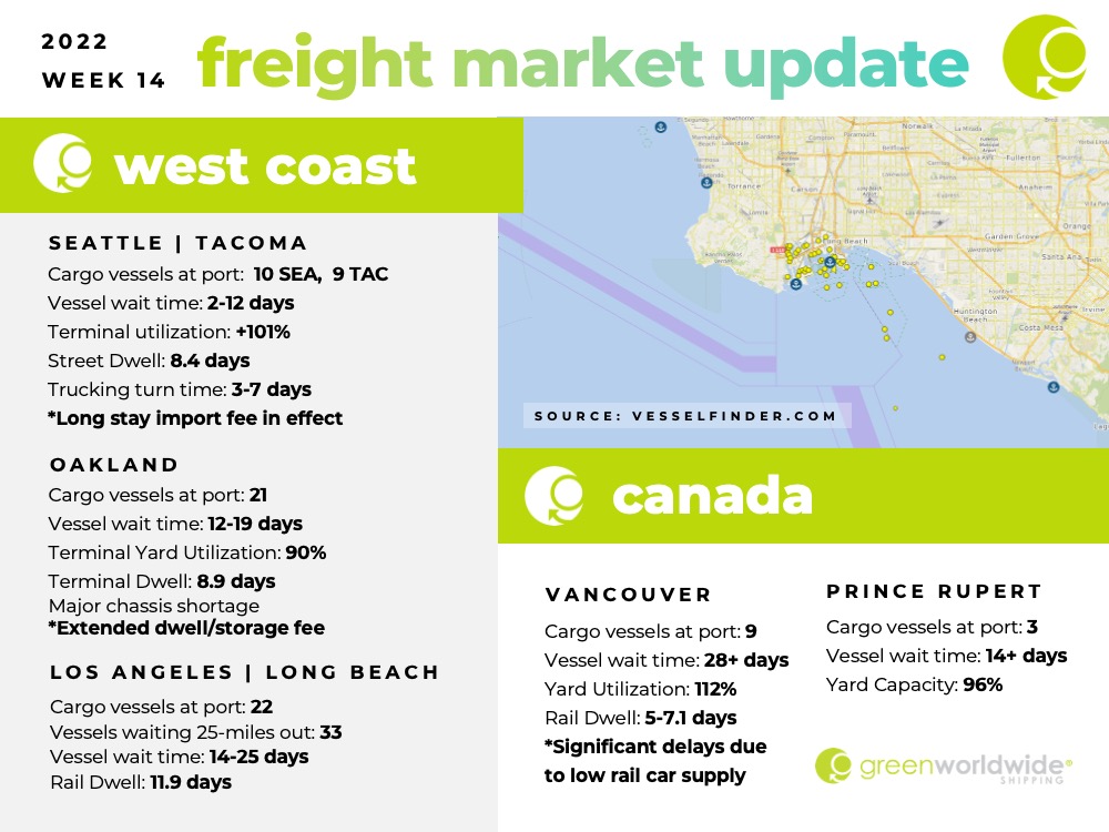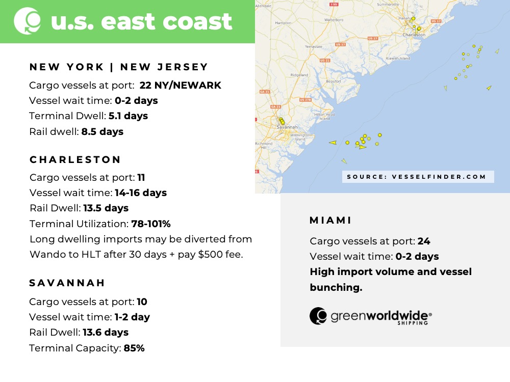 Green Worldwide Shipping’s Freight Market Update covers port information, import and export news, vessel wait time and cargo vessels at major ports & more.  For continuous updates, make sure to check out our website at greenworldwide.com.
