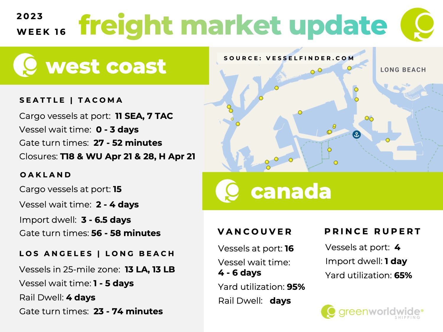 Green Worldwide Shipping’s Freight Market Update covers port information, import and export news, vessel wait time and cargo vessels at major ports & more. For continuous updates, make sure to check out our website at greenworldwide.com.