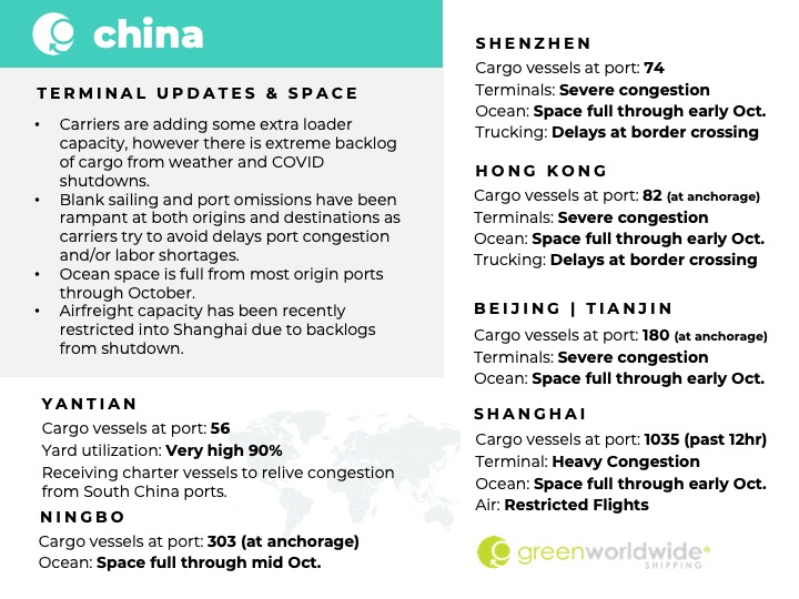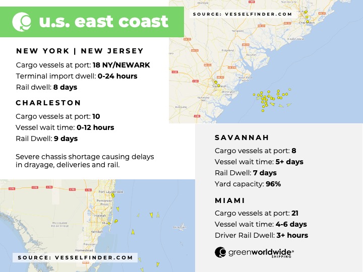 As Green continues to monitor international shipping news, stay up-to-date on supply chain disruptions by following us on Facebook, Twitter, and LinkedIn. Green Worldwide Shipping’s Freight Market Update covers port information, import and export news, vessel wait time and cargo vessels at major ports & more. For continuous updates, make sure to check out our website at greenworldwide.com.