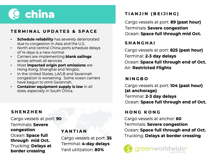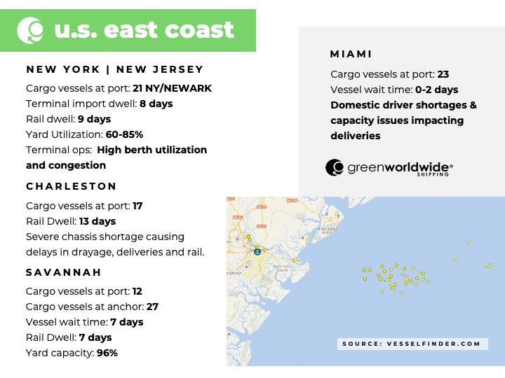 As Green continues to monitor international shipping news, stay up-to-date on supply chain disruptions by following us on Facebook, Twitter, and LinkedIn. Green Worldwide Shipping’s Freight Market Update covers port information, import and export news, vessel wait time and cargo vessels at major ports & more. For continuous updates, make sure to check out our website at greenworldwide.com.