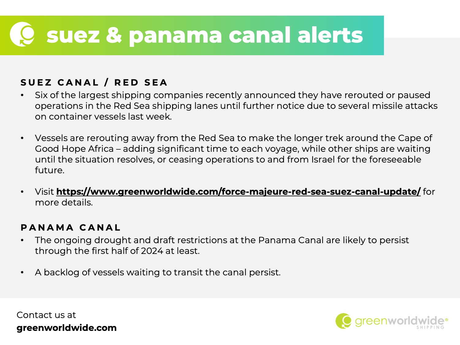 As Green continues to monitor international shipping news, stay up-to-date on supply chain disruptions by following us on Facebook, Instagram, and LinkedIn.