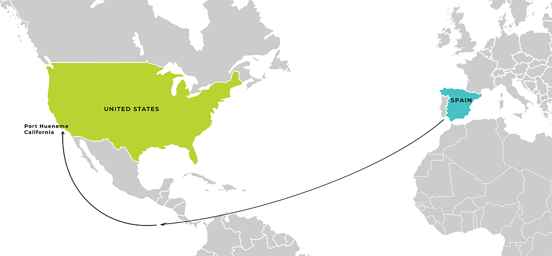 The Green Worldwide Shipping® project cargo team needed to work with local municipalities in order to approve the successful movement of a 21,000kg piece of RORO (roll on/roll off) oversized equipment delivering from Spain to Vernon, CA.