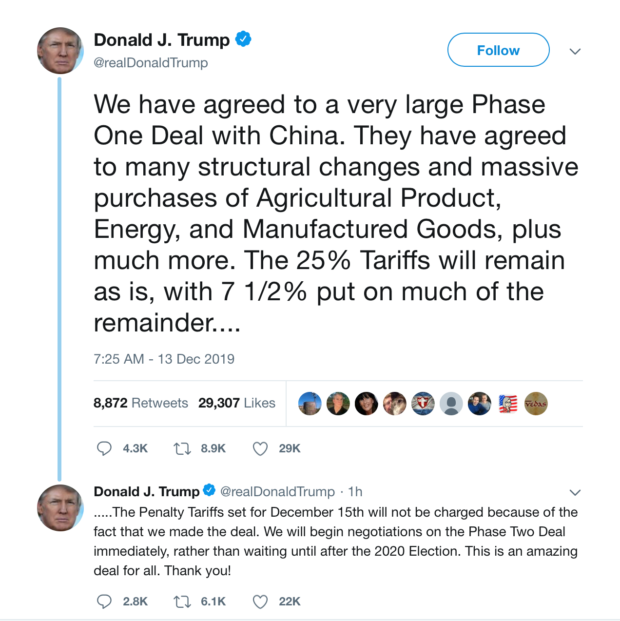 On Friday, December 13, 2019, after almost a year of tense negotiations and escalating trade penalties, the United States and China have finally announced progress with Phase One of a new ‘historic and enforceable agreement.’