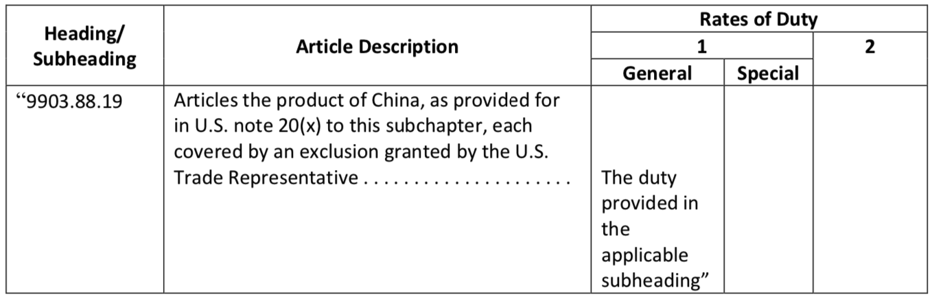 - by inserting the following new heading 9903.88.19 in numerical sequence, with the material in the new heading inserted in the columns of the HTSUS labeled “Heading/Subheading”, “Article Description”, and “Rates of Duty 1-General”, respectively;